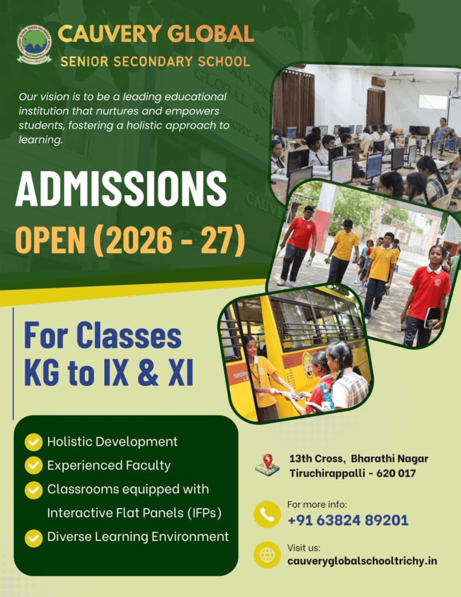 Welcome to Cauvery Global Senior Secondary School, an esteemed institution managed by the Reddy Educational Trust. Our school, established in 2012, and affiliated with the CBSE is dedicated to providing a nurturing environment for students from primary to Senior Secondary School, with a focus on holistic development. Affiliated with the Central Board of Secondary Education (CBSE)...